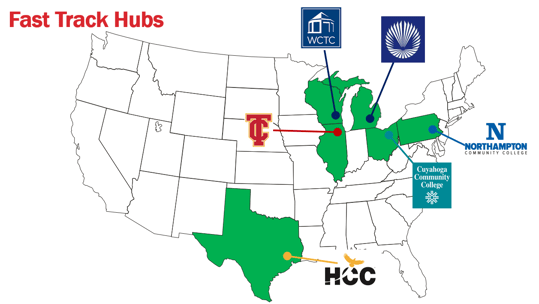 Fast Track Hub & Power Partner Schools have departments on campus with dedicated staff to help you set up a work-based learning program and support students throughout the process. Internship and apprenticeship programs are customizable to your needs.