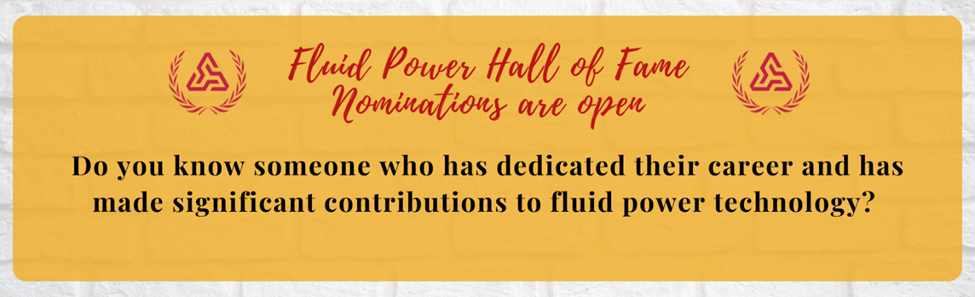 Nominations are accepted from January 1 - April 15 each year. Any person can nominate an individual, living or deceased, who demonstrated excellence within their 25+ year fluid power career; however, an individual is only allowed to nominate for 1) living and 1) posthumous.