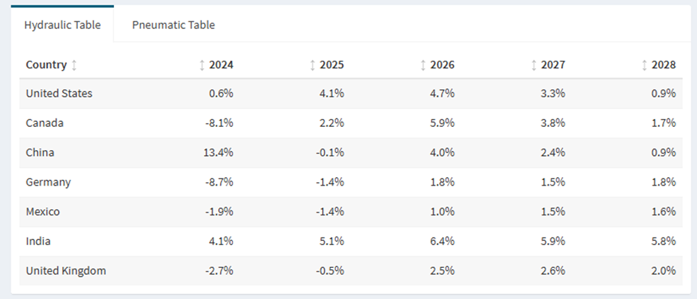The snapshot below from the NFPA Stats Dashboard provides a quick look at Oxford’s Fluid Power growth forecast for the United States and a few other countries.