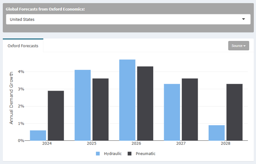 Interested in downloading the complete forecast dataset? Visit the NFPA Stats Toolkit at this link https://nfpahub.com/stats/toolkit/ to quickly retrieve the forecast files for the entire Oxford Fluid Power Forecast report.